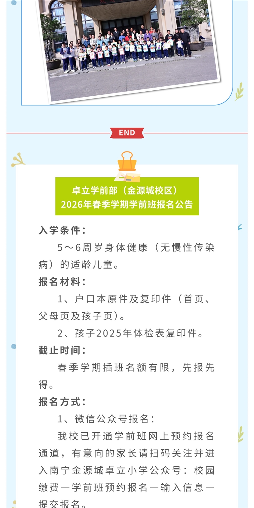 卓立学前部(金源城校区) 2026年春季学期学前班报名公告