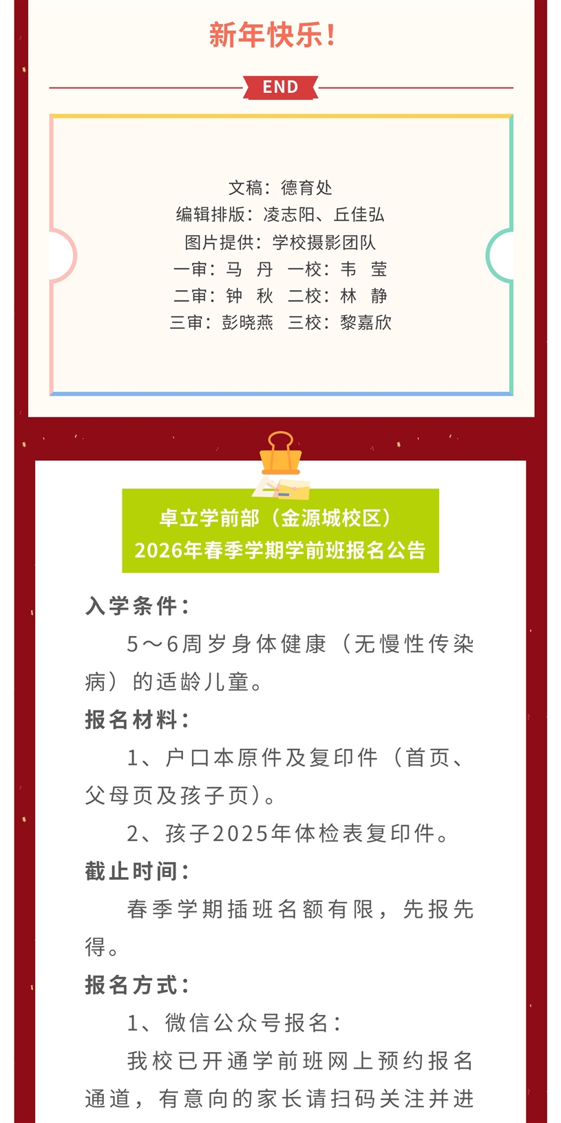 卓立学前部(金源城校区) 2026年春季学期学前班报名公告