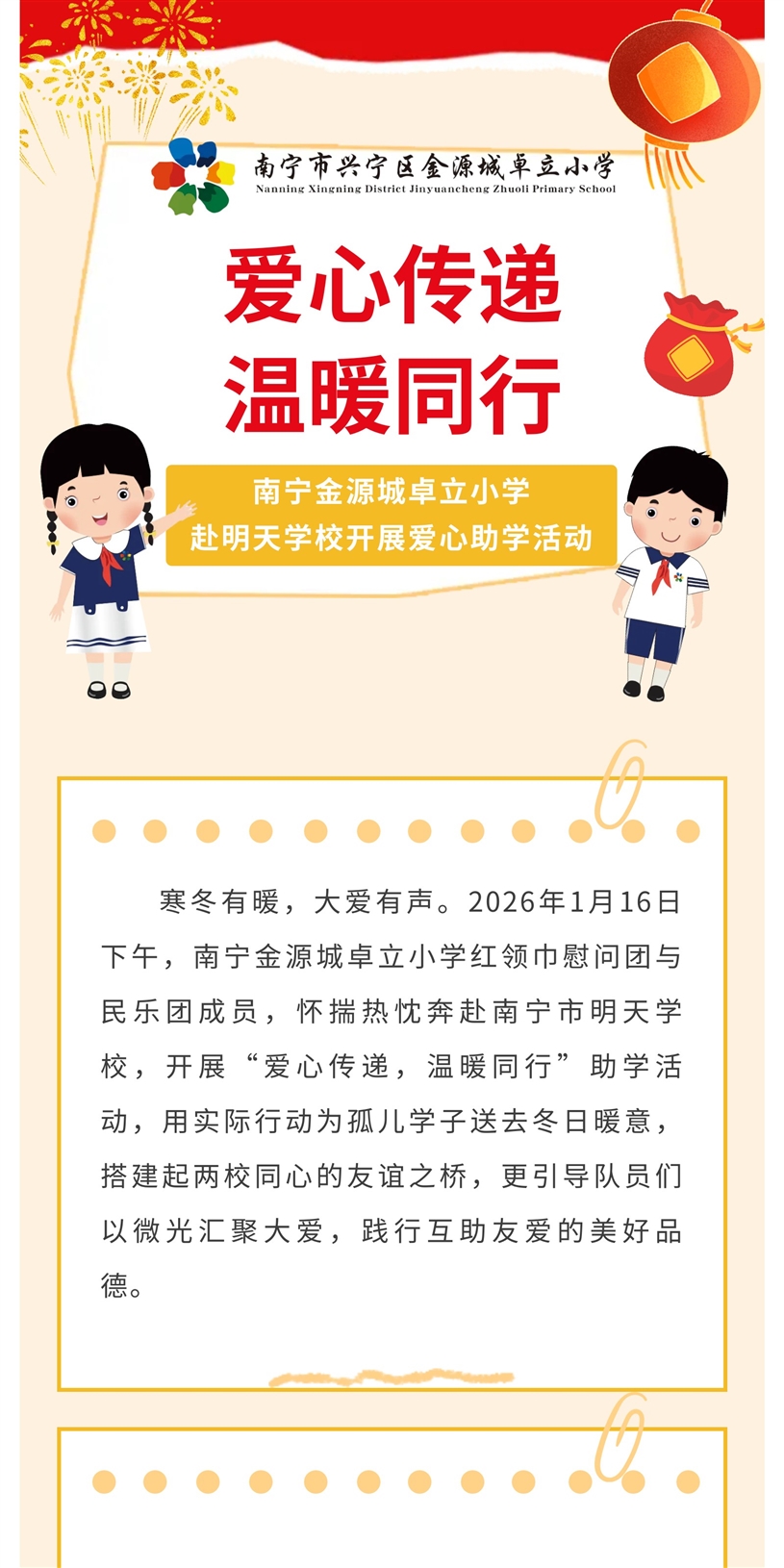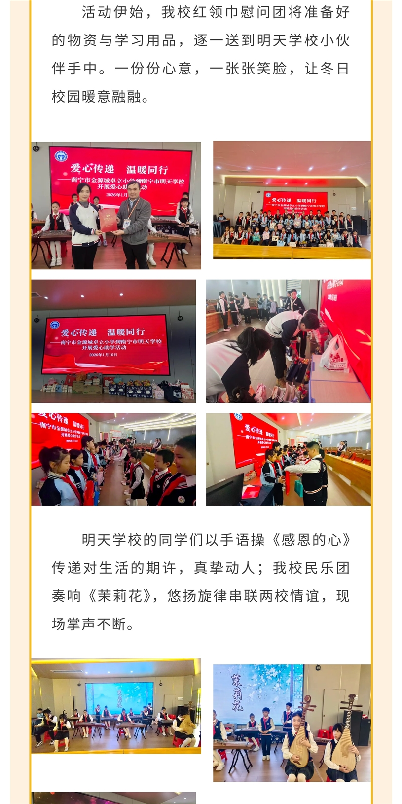 爱心传递,温暖同行——南宁金源城卓立小学赴明天学校开展爱心助学活动