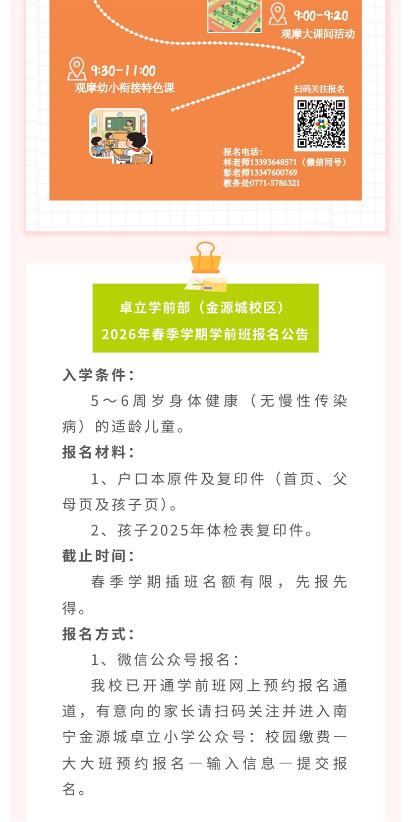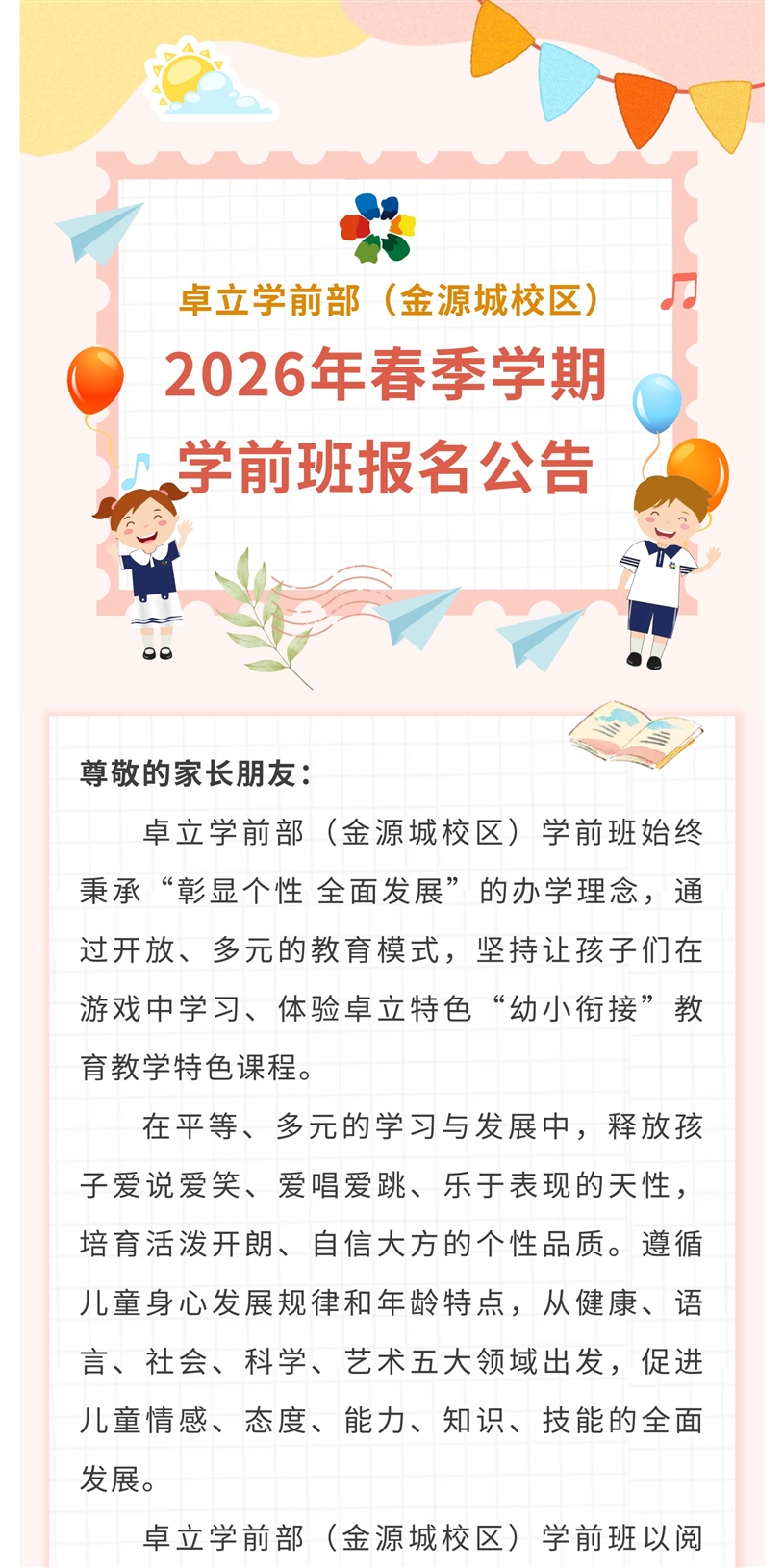 卓立学前部(金源城校区) 2026年春季学期学前班报名公告