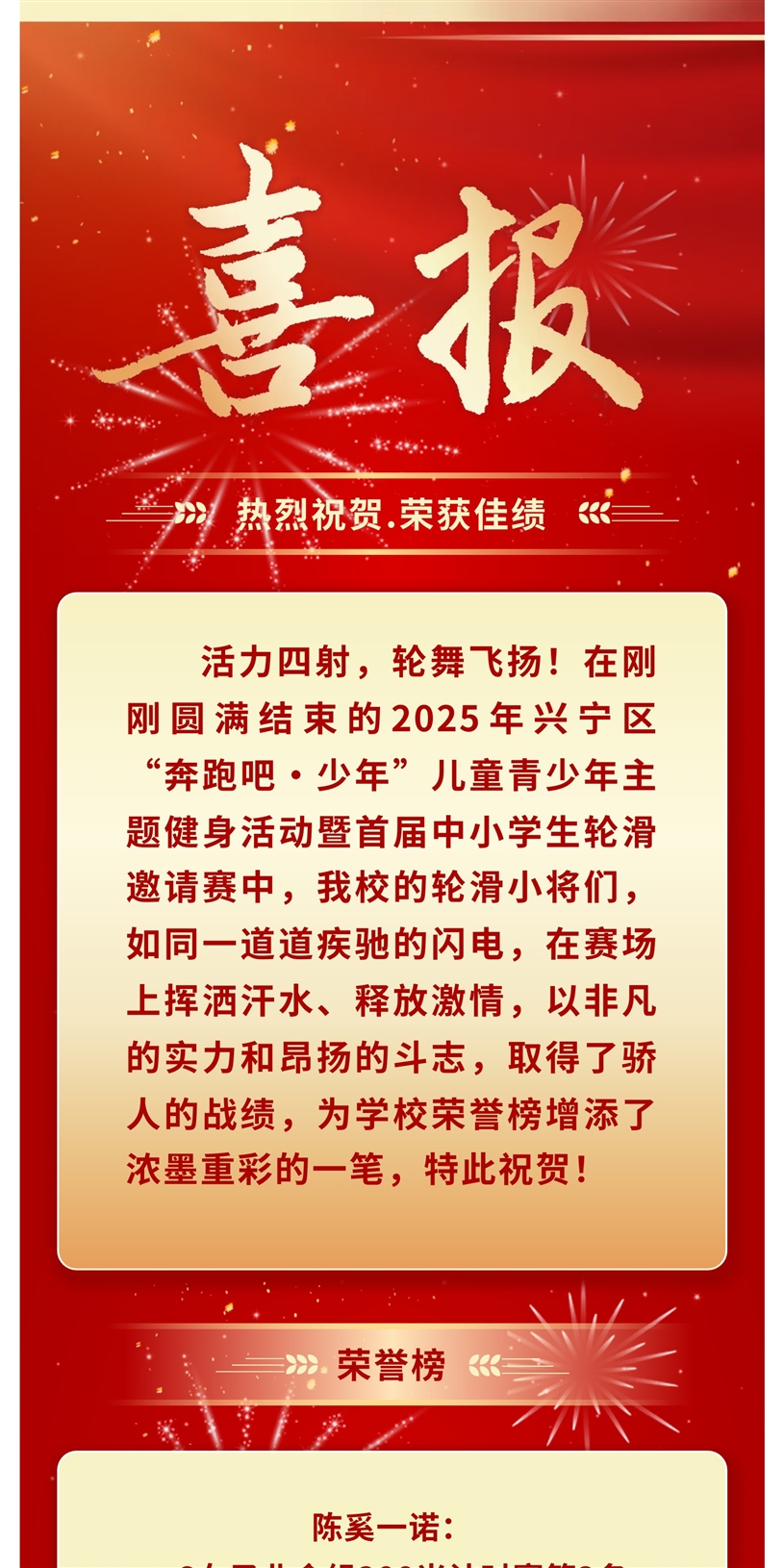 喜报|2025年兴宁区“奔跑吧,少年”首届中小学生轮滑邀请赛喜报