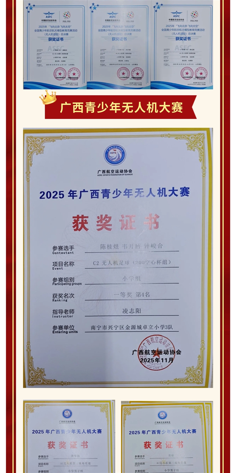 喜 报│南宁金源城卓立小学无人机、无人机足球、科创社团斩获佳绩!