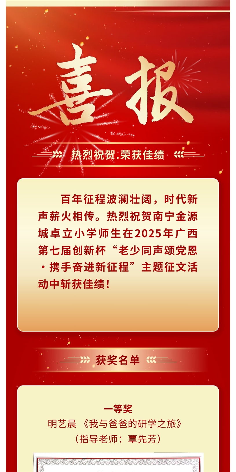 喜报│南宁金源城卓立小学师生在广西第七届创新杯主题征文活动中喜获佳绩