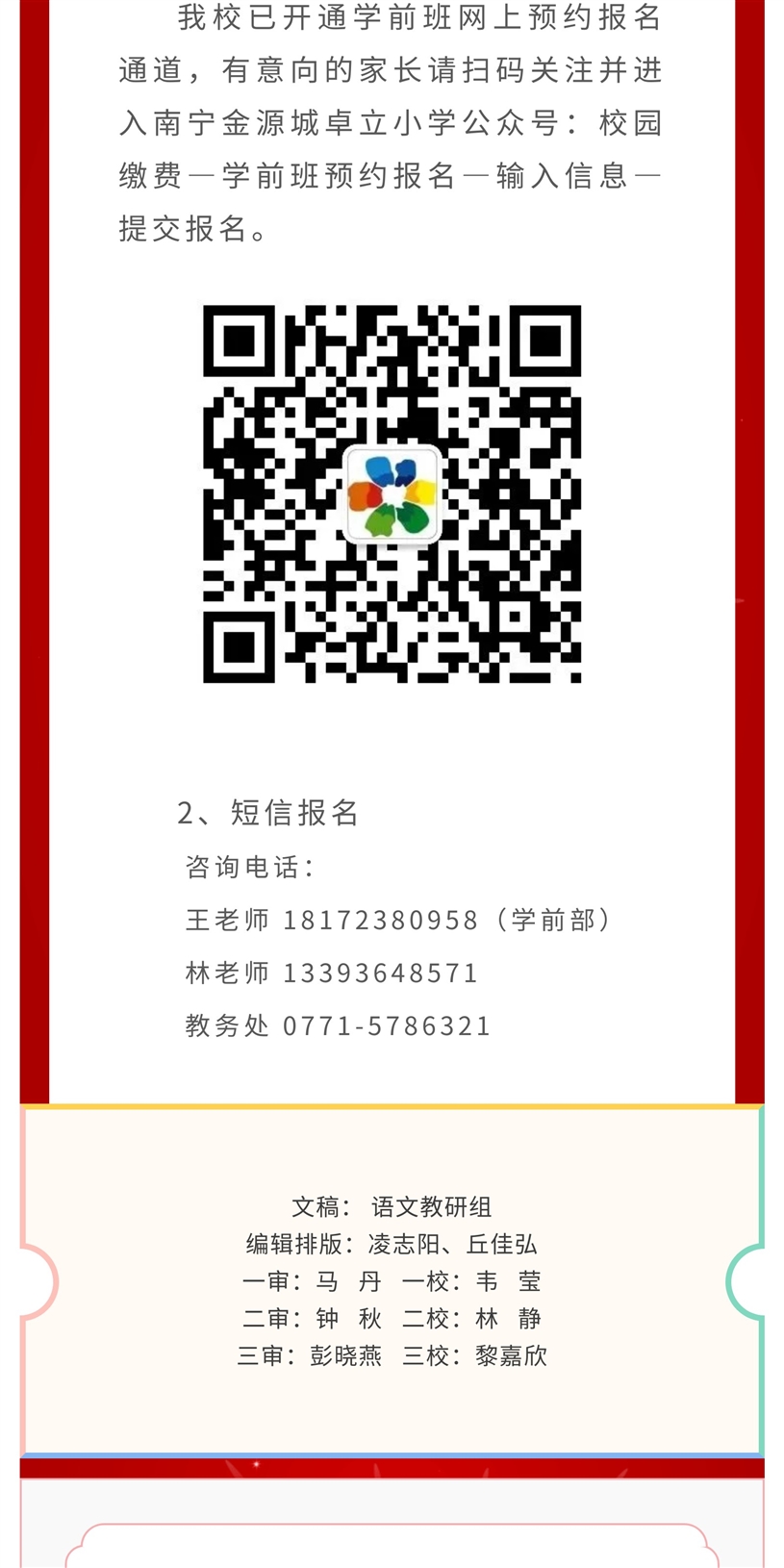 卓立学前部(金源城校区) 2026年春季学期学前班报名公告