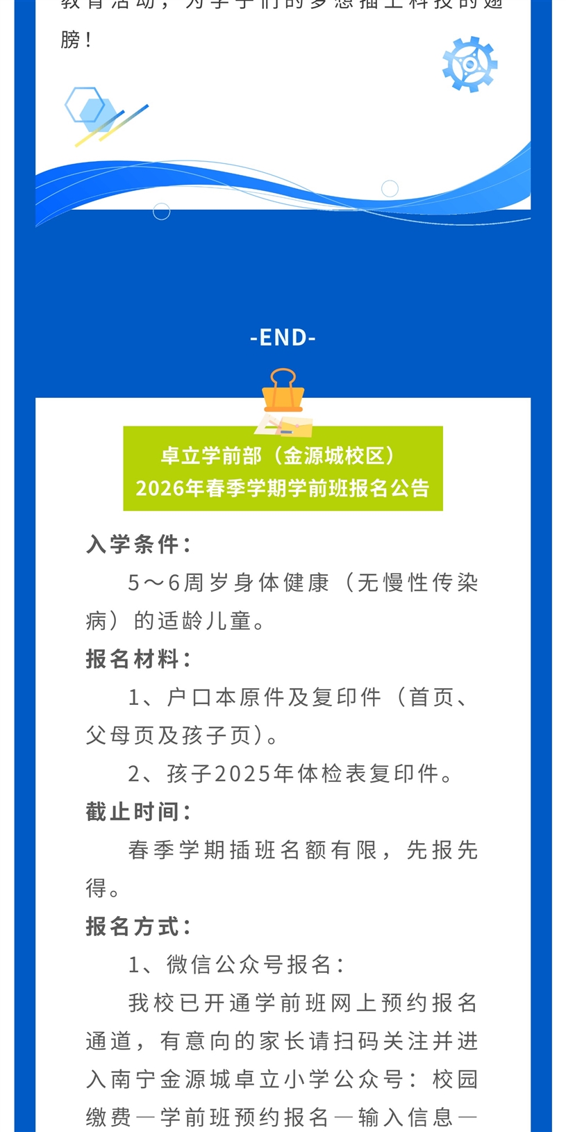 卓立学前部(金源城校区) 2026年春季学期学前班报名公告