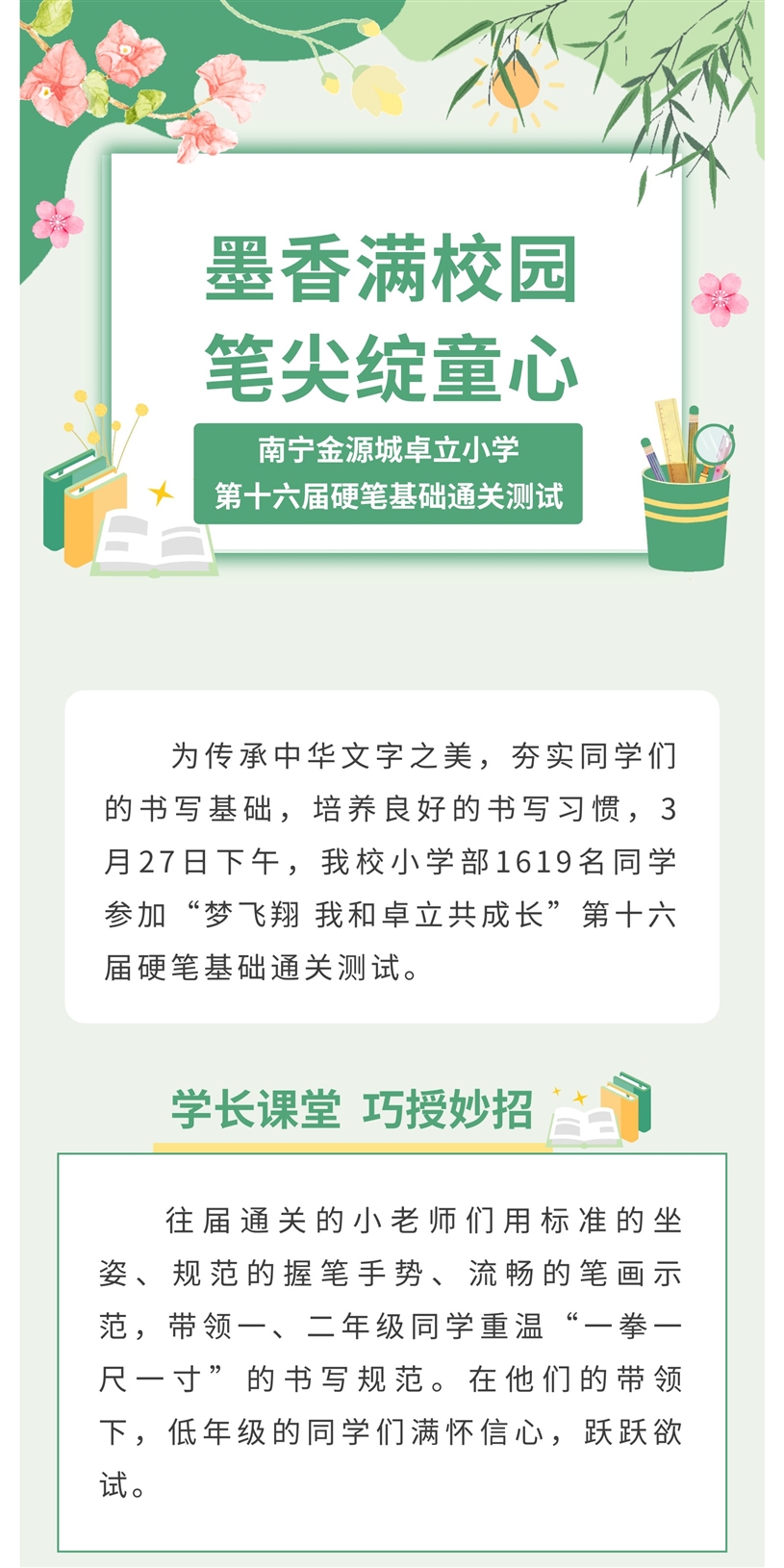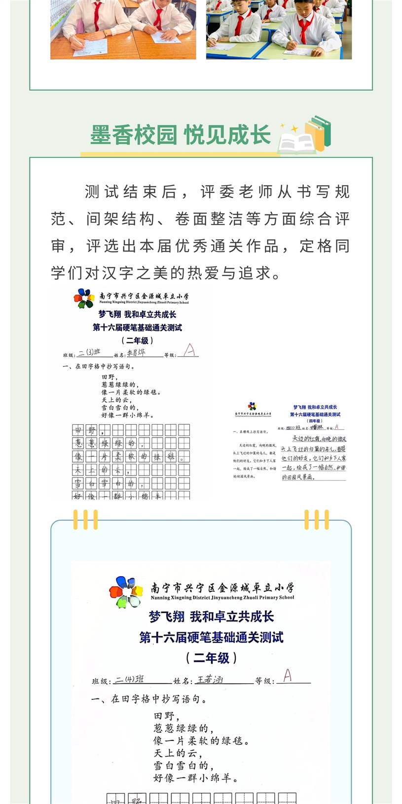 墨香满校园 笔尖绽童心 ——南宁金源城卓立小学第十六届硬笔基础通关测试