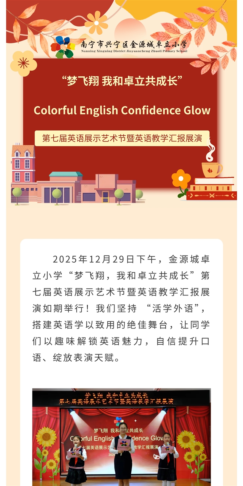 “梦飞翔 我和卓立共成长” Colorful English Confidence Glow 第七届英语展示艺术节暨英语教学汇报展演