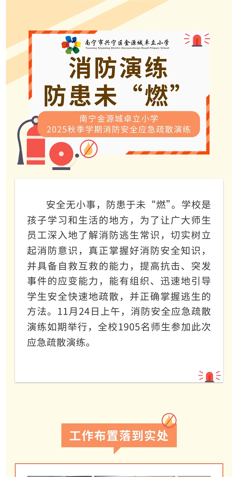 消防演练,防患未“燃”——南宁金源城卓立小学2025秋季学期消防安全应急疏散演练